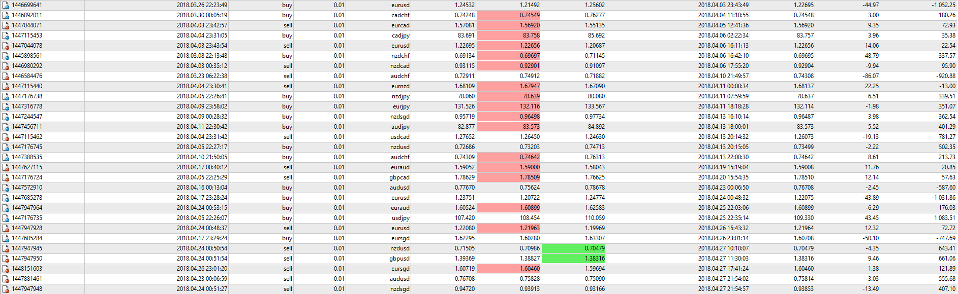 | Результат торговли с 23-30 апреля 2018 по стратегии «Тренд» |